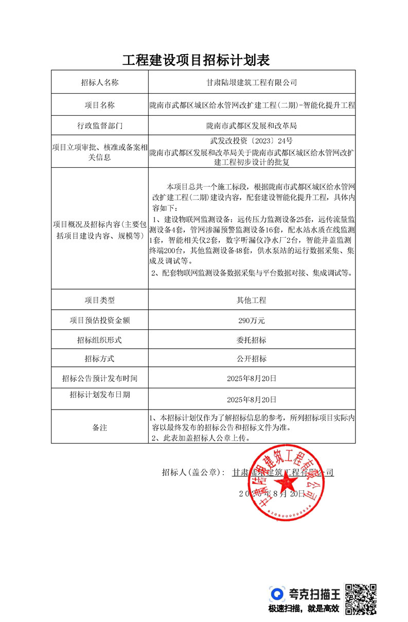 隴南市武都區(qū)城區(qū)給水管網改擴建工程(二期)-智能化提升工程