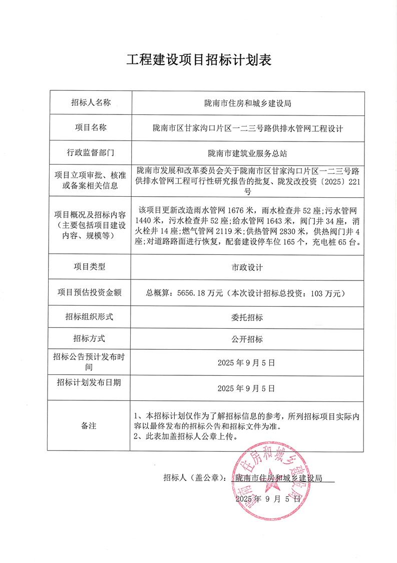 隴南市區(qū)甘家溝口片區(qū)一二三號路供排水管網(wǎng)工程設(shè)計