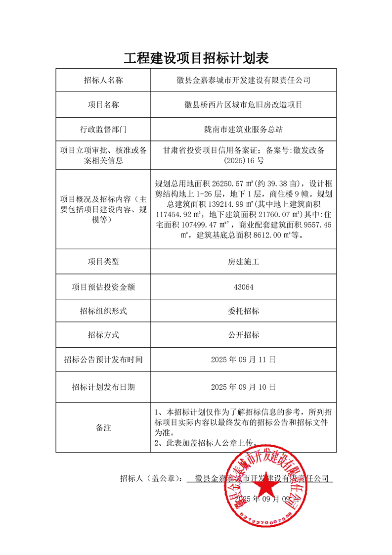 施工招標(biāo)計劃表—徽縣橋西片區(qū)城市危舊房改造項目(1).pdf