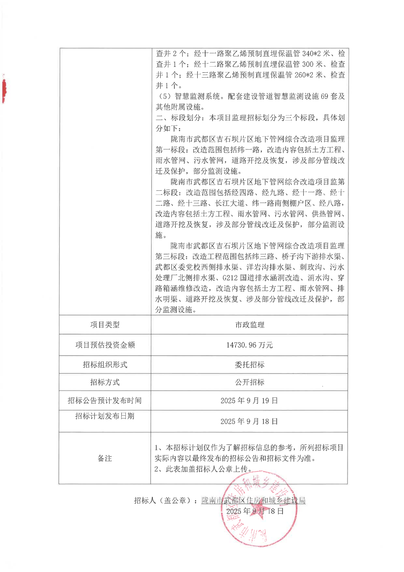 隴南市武都區(qū)吉石壩片區(qū)地下管網(wǎng)綜合改造項(xiàng)目監(jiān)理