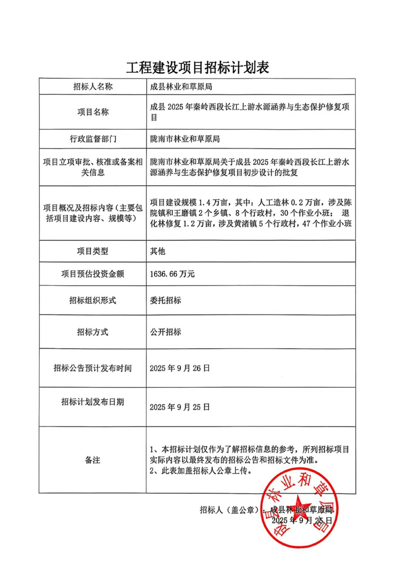 成縣2025年秦嶺西段長江上游水源涵養(yǎng)與生態(tài)保護修復(fù)項目