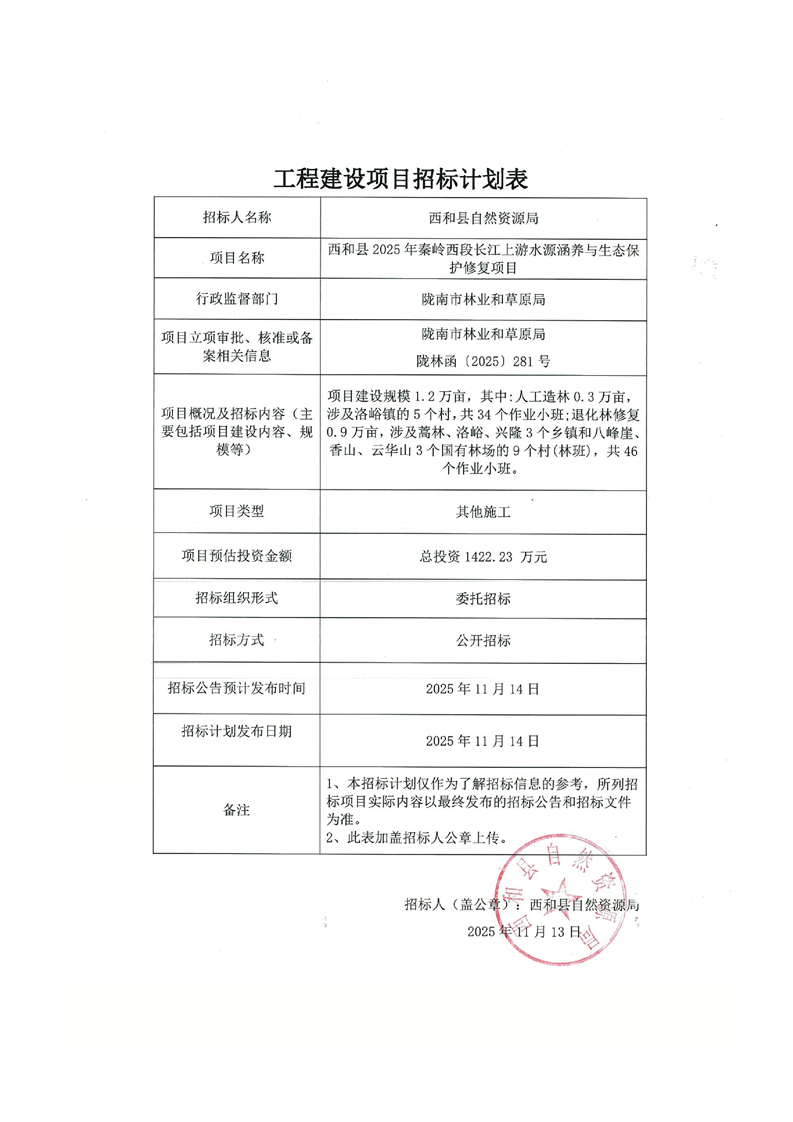 西和縣2025年秦嶺西段長江上游水源涵養(yǎng)與生態(tài)保護修復(fù)項目